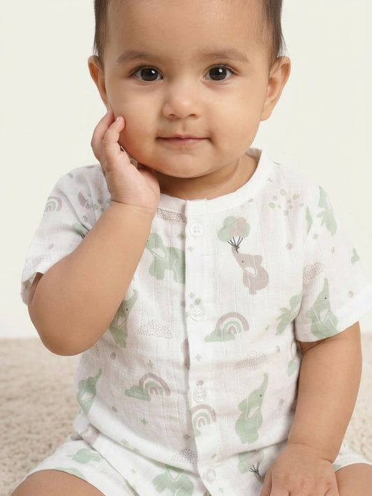 Biglilpeople Unisex Multicolor Elephant & Rainbow Round Neck Short Sleeves Clothing Set