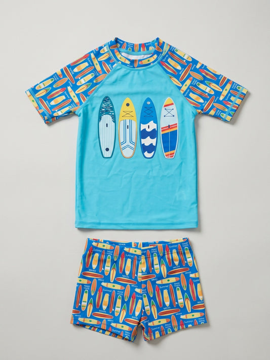 Biglilpeople Boys Multicolour Graphic Print Round Neck Short Sleeves Two-Piece Swimsuit Set