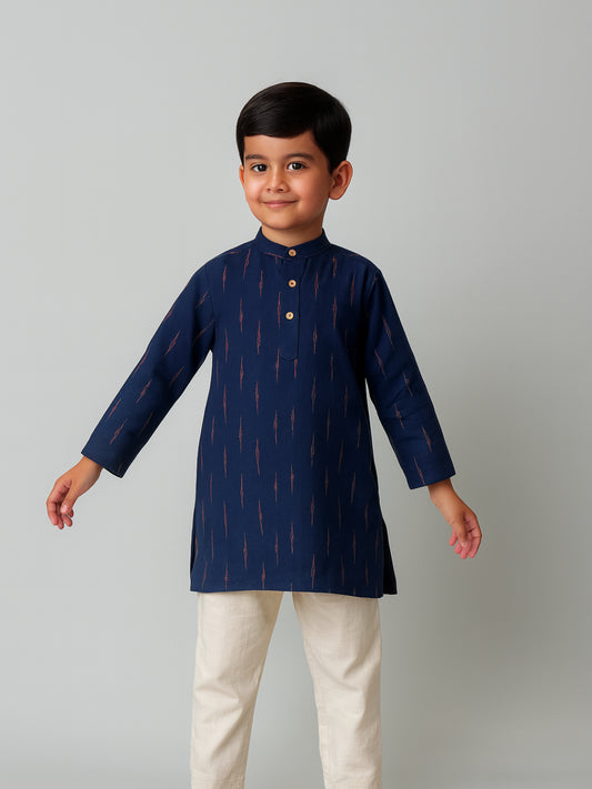 Biglilpeople Boys Printed Mandarin Collar Full Sleeves Kurta and Pyjama Set