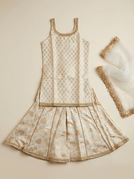 Biglilpeople Girls Off-White Mirror Work Straight Kurta & Pyjamas Set