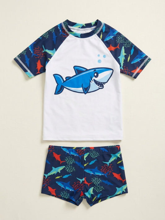 Biglilpeople Boys Graphic Print T-Shirt and Cargo Shorts Set with Sunglasses