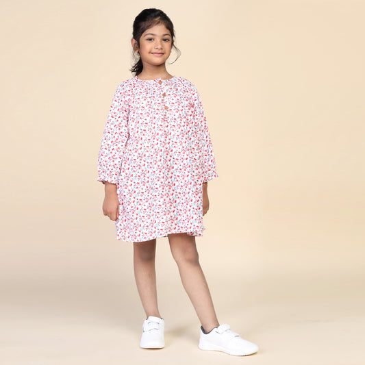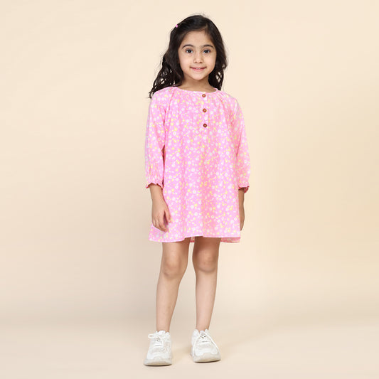 Antifit Nightdress for Girls in Pink & Yellow Floral Print