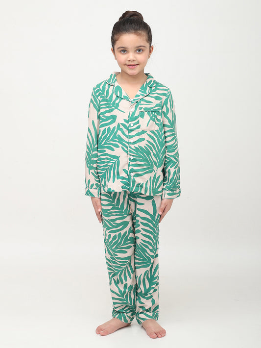 Tropical Printed Full Sleeves Night Suits For Girls
