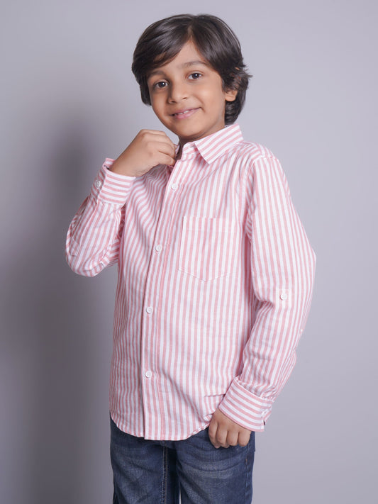 White/Orange Striped Full Sleeve Casual Shirt