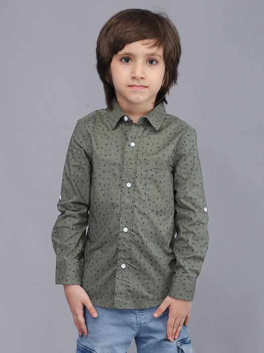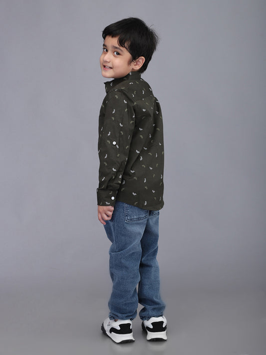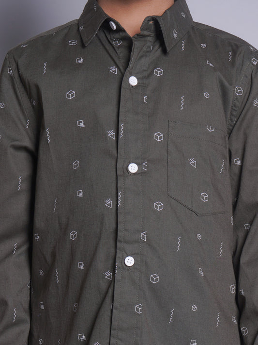 Olive Green Printed Full Sleeve Shirt