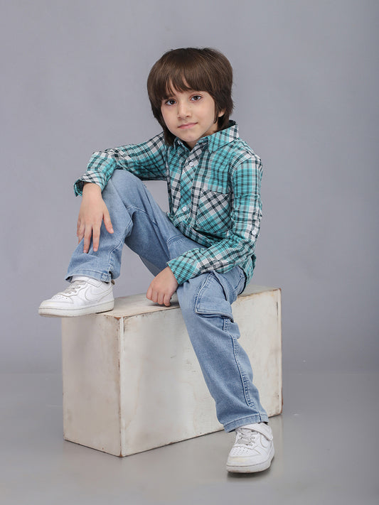 Green & White Checkered Full Sleeve Shirt