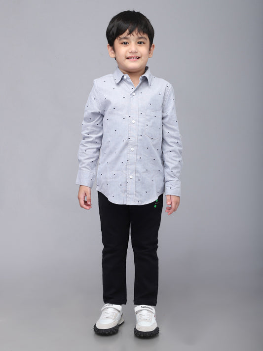 Grey Printed Full Sleeve Casual Shirt