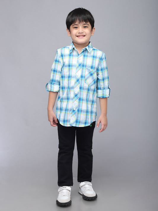 White & Blue Checkered Full Sleeve Shirt