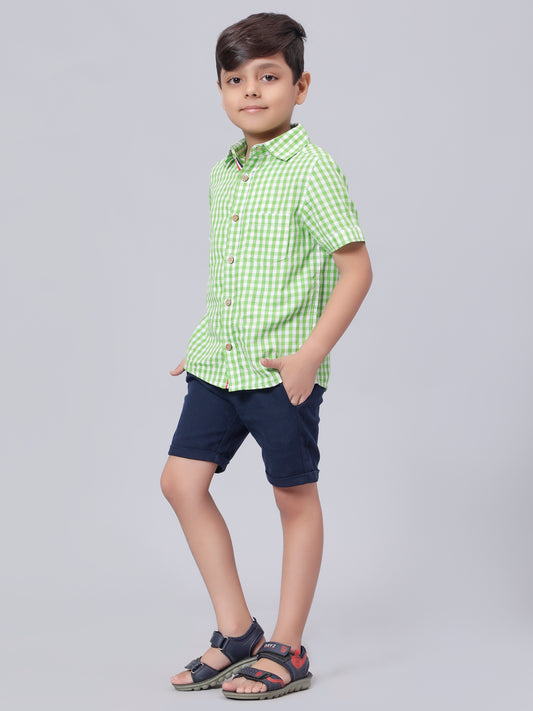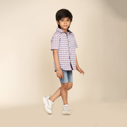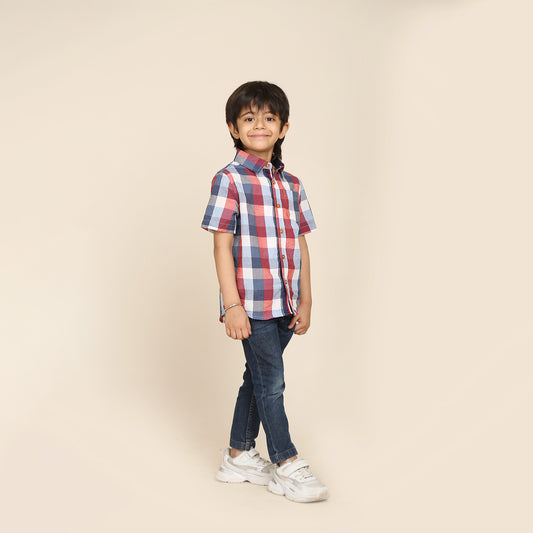 Half Sleeves Check Shirt for Boys- Multicolored