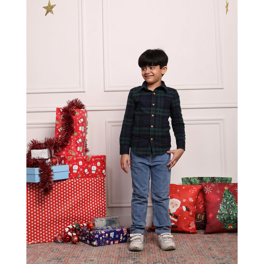 Green & White Checkered Full Sleeve Shirt