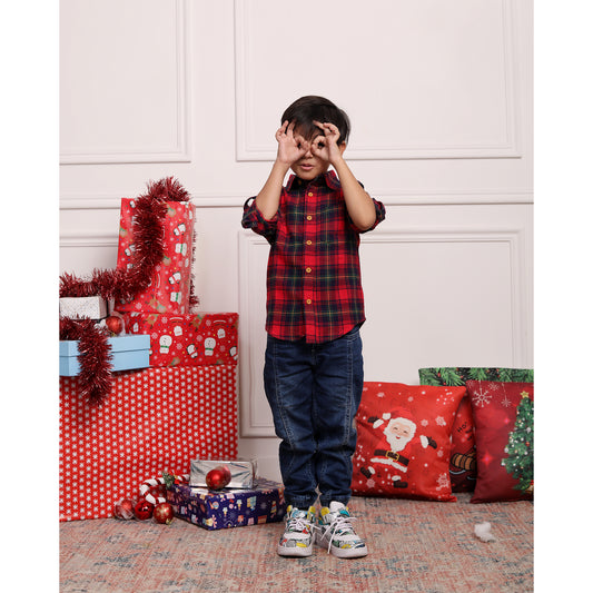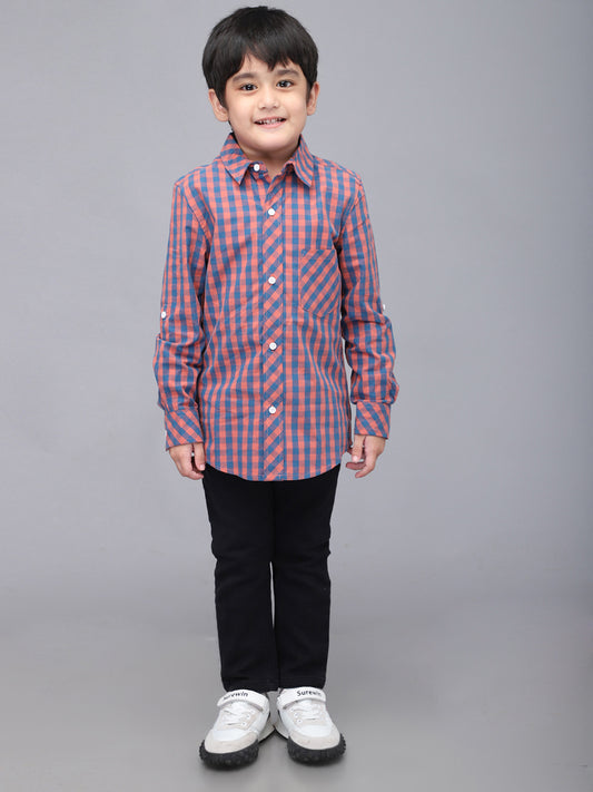 Red & Blue Checkered Full Sleeve Casual Shirt