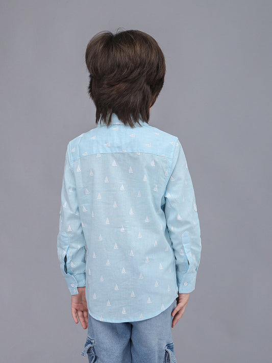 Blue Printed Full Sleeve Casual Shirt