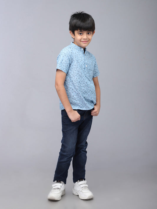 Mandarin Style Printed Half Sleeves Casual Shirt
