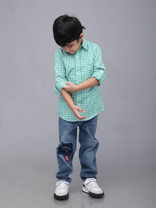 Green Gingham Checks Full Sleeve Shirt
