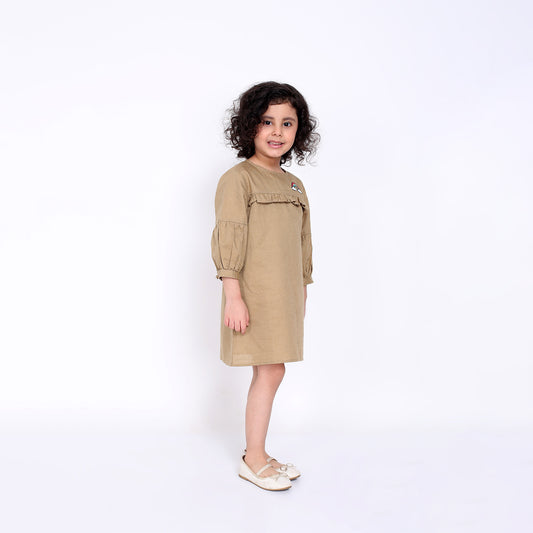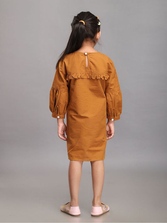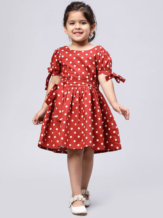 Rust Brown Polka Dotted Dress for Girls