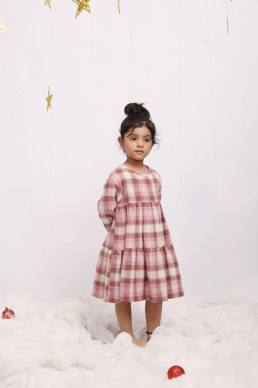 Pink & Brown Checks Christmas Flannel Dress