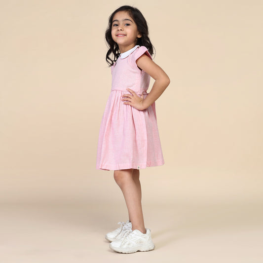 Peter Pan Collar Dress in Pink Checks