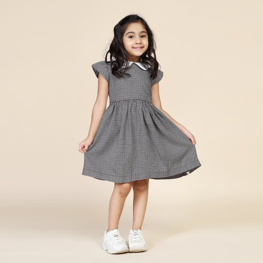 Peter Pan Collar Dress in Black Checks