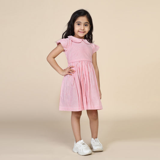 Peter Pan Collar Dress in Red & White Stripes