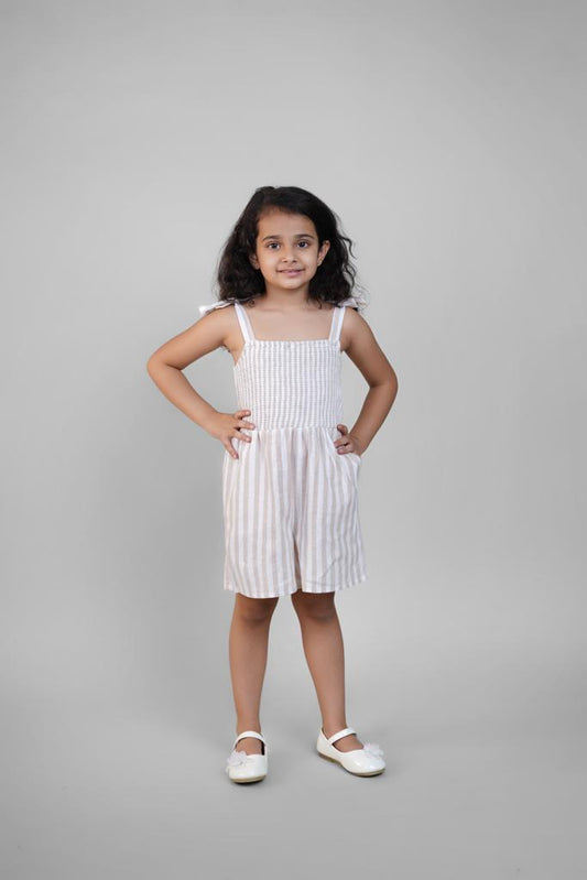 Jumpsuit for Girls in Beige Stripes