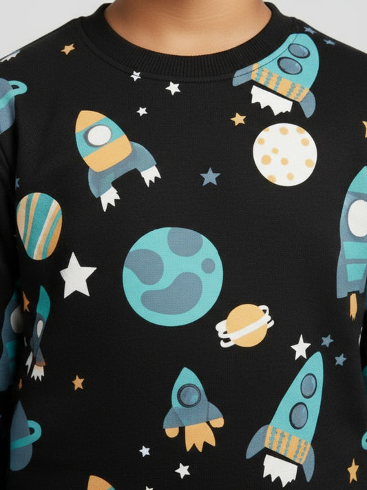 Boys Black Space Print Rocket & Planet Design Winter Sweatshirt