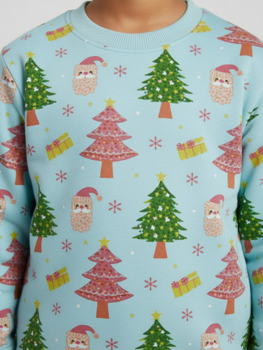 Biglilpeople Christmas Print Light Blue Sweatshirt