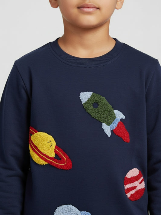 Biglilpeople Space Embroidered Dark Blue Sweatshirt