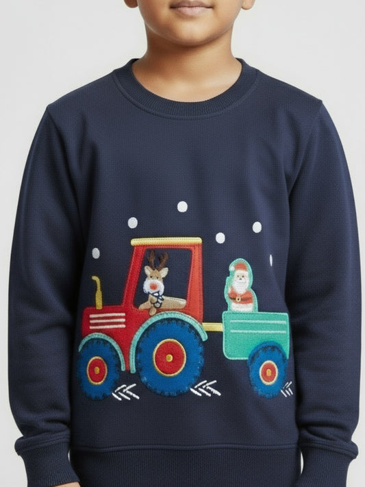 Boys Navy Blue Tractor Print Winter Sweatshirt