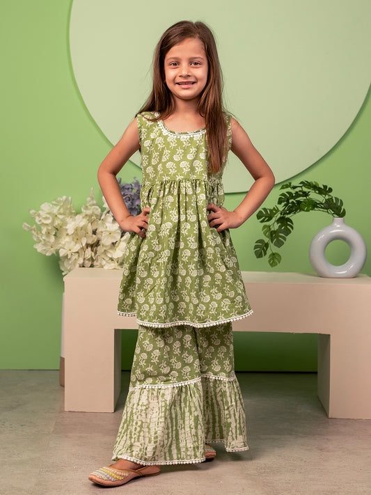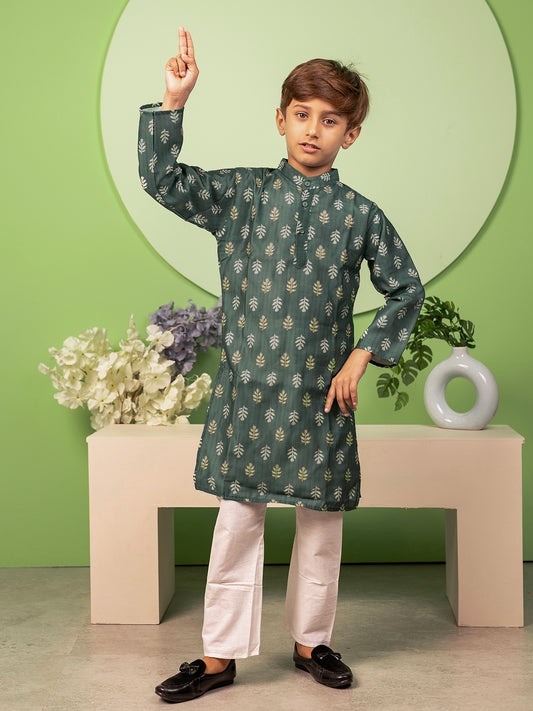 Boys Kurta Pyjama Set in Chanderi Cotton Silk- Green