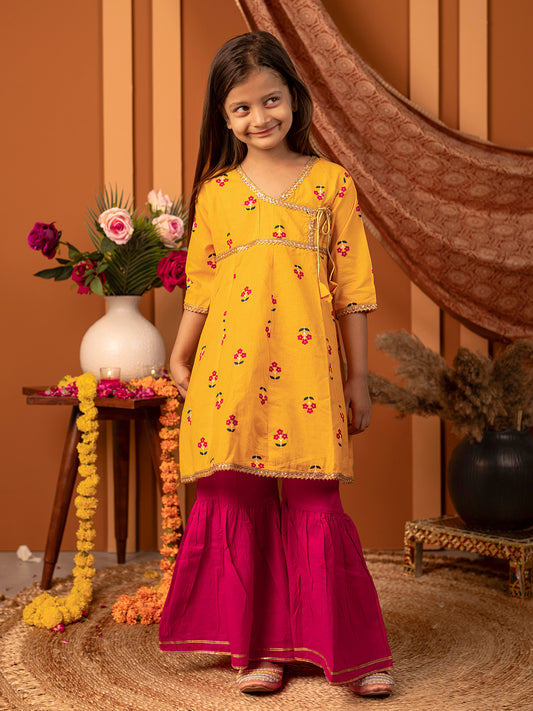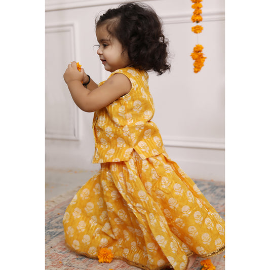 Chanderi Cotton Silk Infant Girls Lehenga Set - Yellow