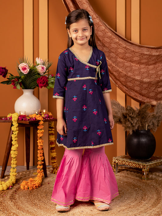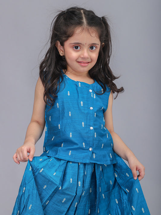 Handloom Cotton Silk Infant Girls Lehenga Set - Blue