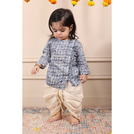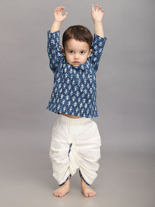 Infant Dhoti Kurta Set in Mulmul Cotton - Blue