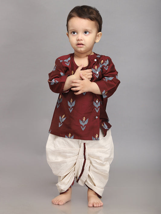 Infant Dhoti Kurta Set in Cotton Silk in Maroon