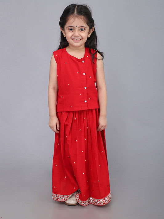 Handloom Cotton Infant Girls Lehenga Set - Red