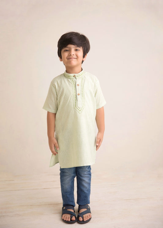 Boys Kurta Pyjama Set in Cotton - Olive Green