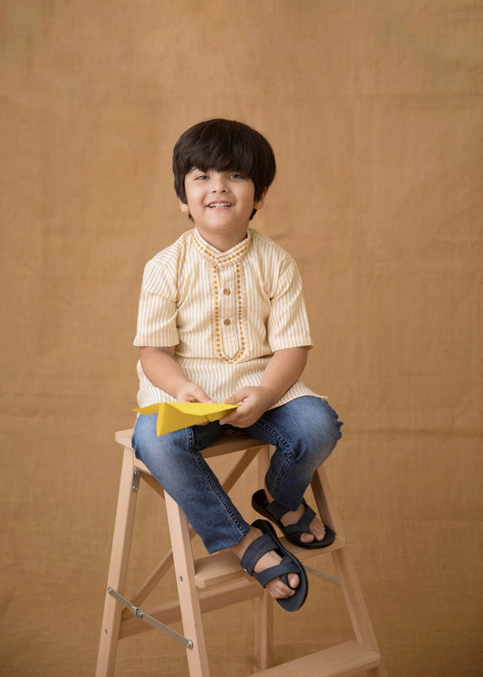 Boys Kurta Pyjama Set in Cotton - Yellow