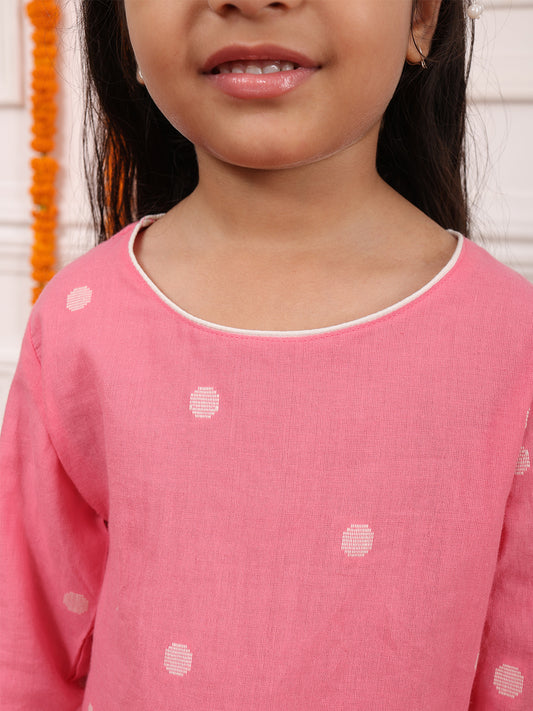 Biglilpeople Girls Woven Polka Dot Round Neck Long Sleeves Kurta Set