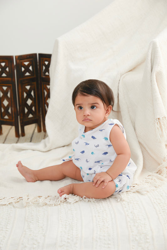 Floral Printed Shirt with shorts for Boys in Cotton Linen - (Olive)
