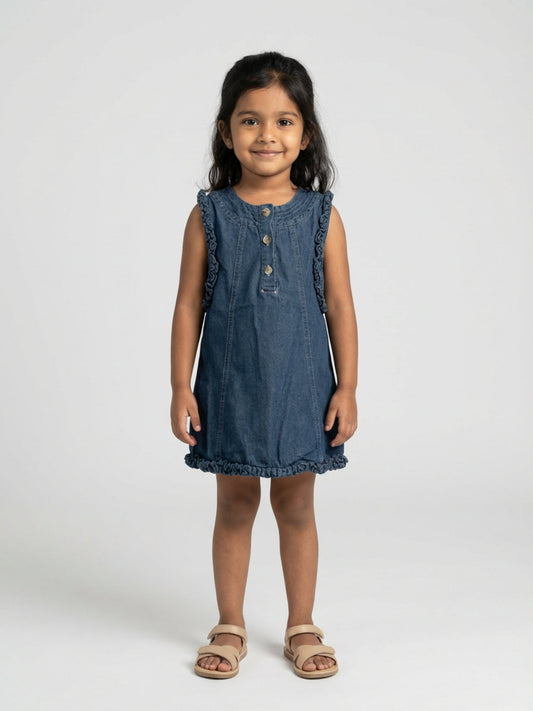 Biglilpeople Girls Navy Blue Round Neck Sleeveless Shift Dress