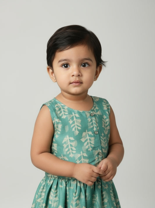Biglilpeople Infant Girls Printed Round Neck Sleeveless Lehenga Choli Set