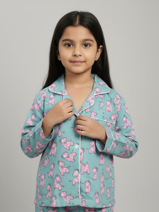 Biglilpeople Girls Printed Shirt and Pyjama Night Set