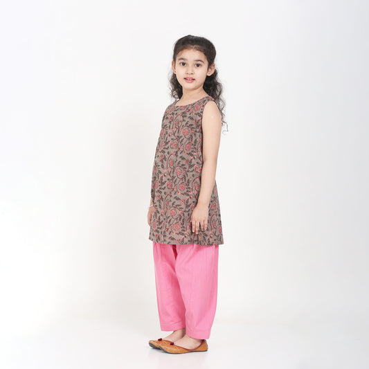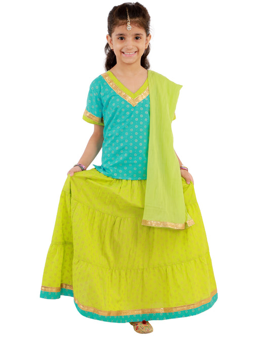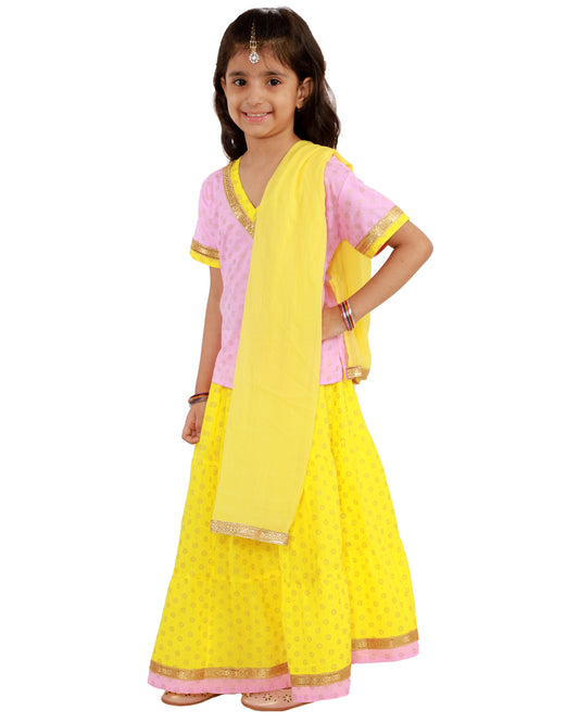 Jaipuri Lehenga Choli Set- Pink & Yellow