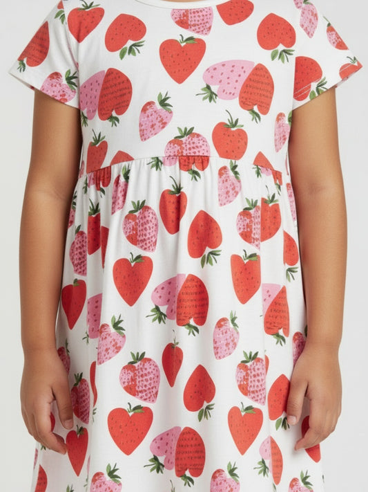 Biglilpeople Girls Strawberry Print Short Sleeves Knee Length A-Line Dress