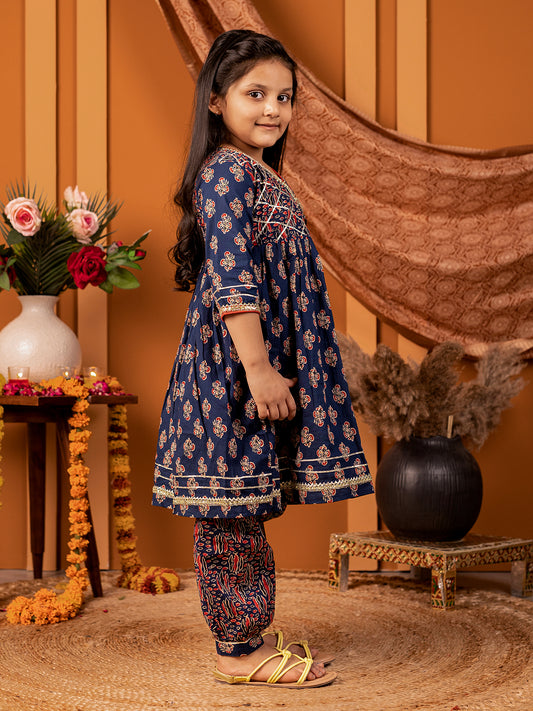 Salwar Suit set in Ajrakh Print - Navy