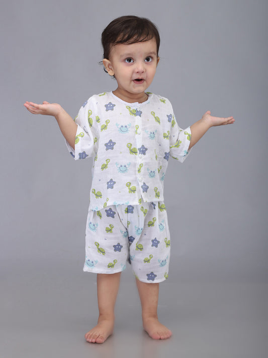Kids Cotton Half Sleeves Co-ords Set For Unisex (Animals Print)