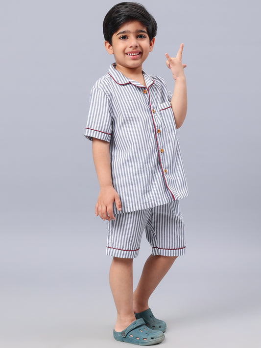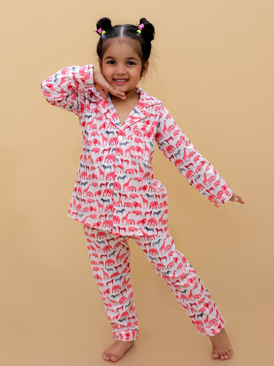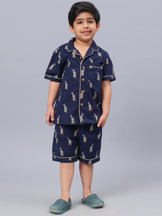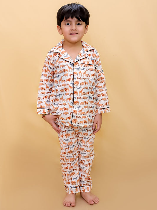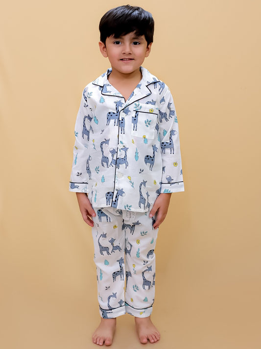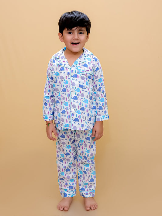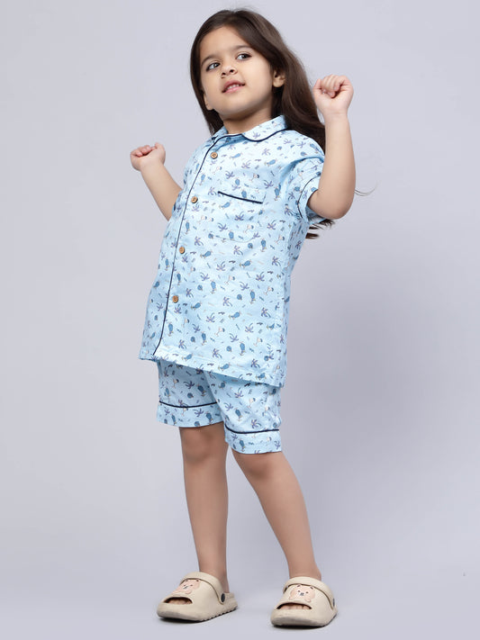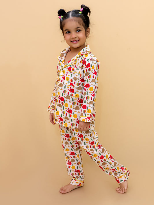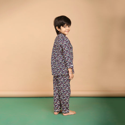 Notched Collared Night Suit in Icecream Print for Girls & Boys