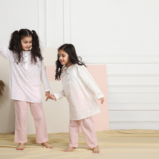 Unisex Grandpa Kurta Set - White with Pink Pyjama