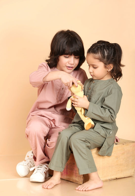 Unisex Grandpa Kurta Set with Hand-Embroidered Neckline