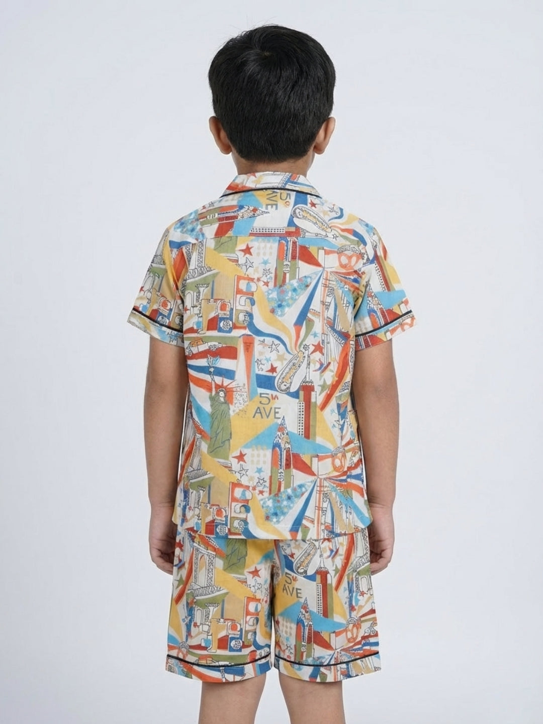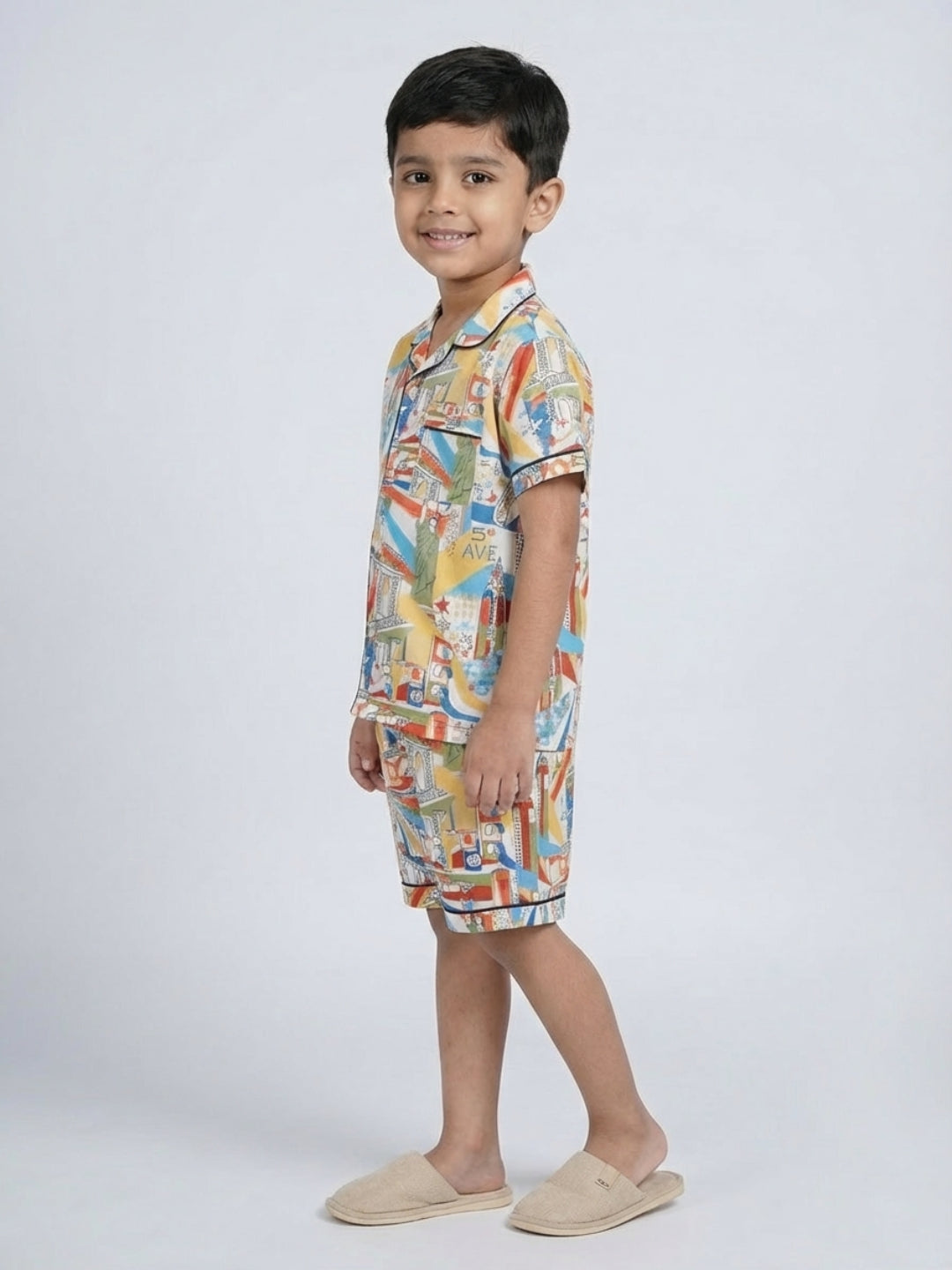 Biglilpeople Conjunto de Pijama de Camiseta de Manga Corta y Pantalones Cortos de Algodón Puro con Estampado NYC Downtown para Niños