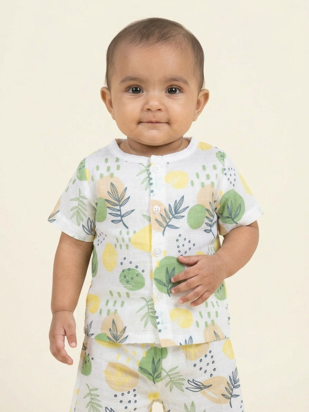 Biglilpeople Unisex Multicolor Fruit & Leaf Print Round Neck Short Sleeves Clothing Set